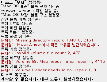 Disk First Aid에러 메시지... 무엇이 문제인가요???